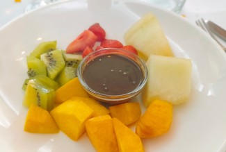 - Macedonia con chocolate - Versión triste de una fondue.