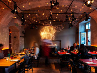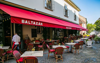 Se trata de un hotel-restaurante de estilo clásico que ofrece una mezcla de aperitivos, ensaladas, hamburguesas y unos cuantos platos más o menos húngaros. Mesas pequeñas y bastante juntas. Sin manteles. Menaje correcto. Servicio amable. Vi casi una docena de vinos a copas, pero no me sonaba ninguno y opté por pedir un refresco (1.380 HUF).