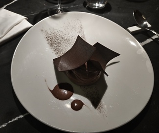 Cookie, cremoso de chocolate, caramelo, helado de cacahuete, teja crujiente, muy rico y cremoso, para terminar esta bastante bien el menú, no estamos llenos pero si satisfechos, el vino Le iba muy bien al postre.