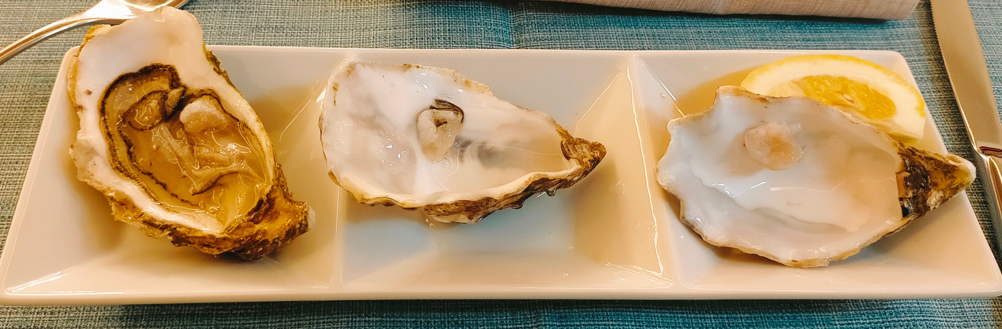 - Ostriche selezione Fine de Claire n°3 Marennes-Oléron (3 €/ud) - Tres ostras normalitas. Venían las tres llenas, pero me tuvieron esperando casi media hora y tenía hambre ;-P