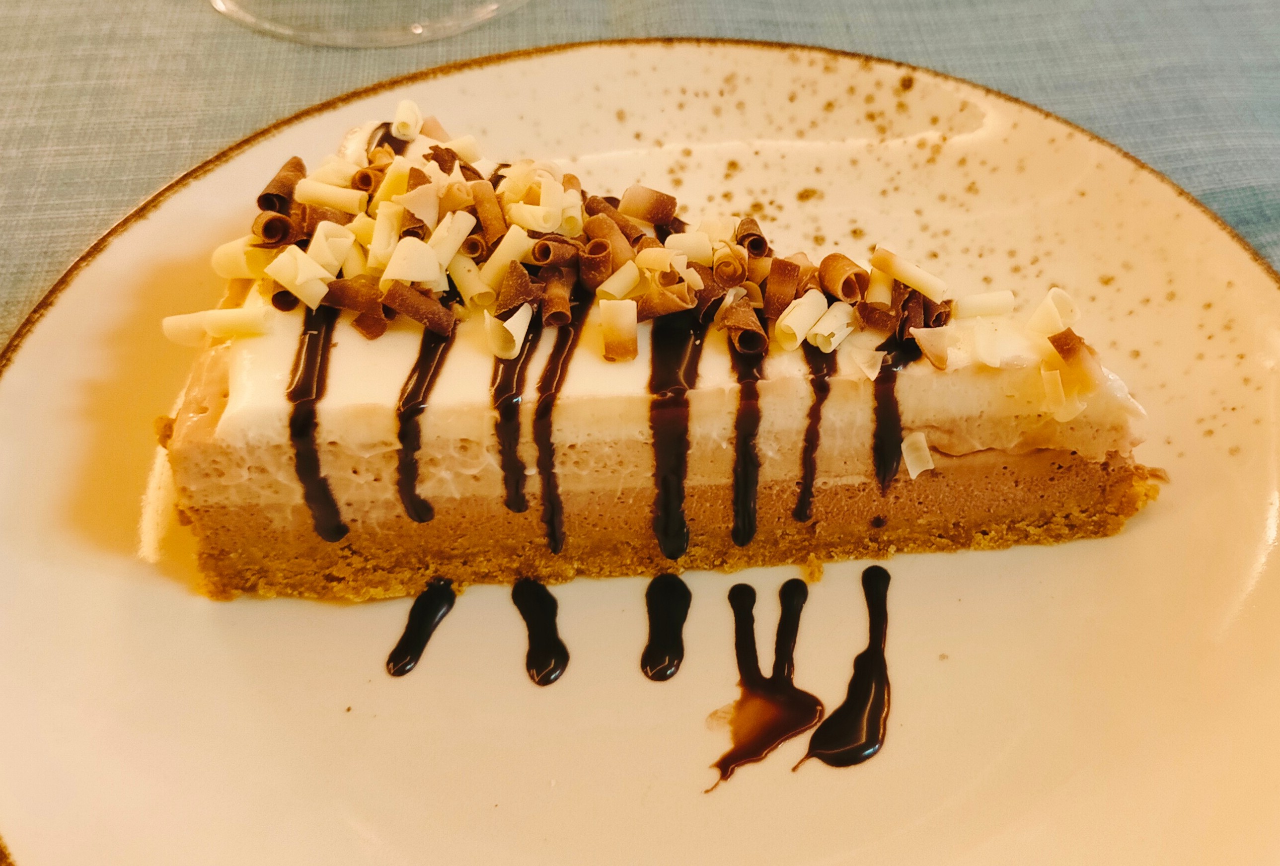 - Cheesecake stratificata ai tre cioccolati (6 €) - Porque lo pone en el nombre, porque los tres chocolates solo se notaban por el color. Absolutamente insípido, aunque dulce.