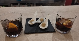 -Aperitivo esferificacion de Gilda y vermu, Gilda muy conseguida, gran textura.