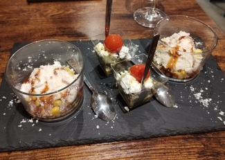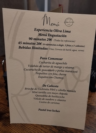 Elegimos menú desgustacion con los vinos, adjunto fotos (cambian semanalmente), también tienen raciones a la carta pero aconsejo mejor la armonía, el menú degustacion.