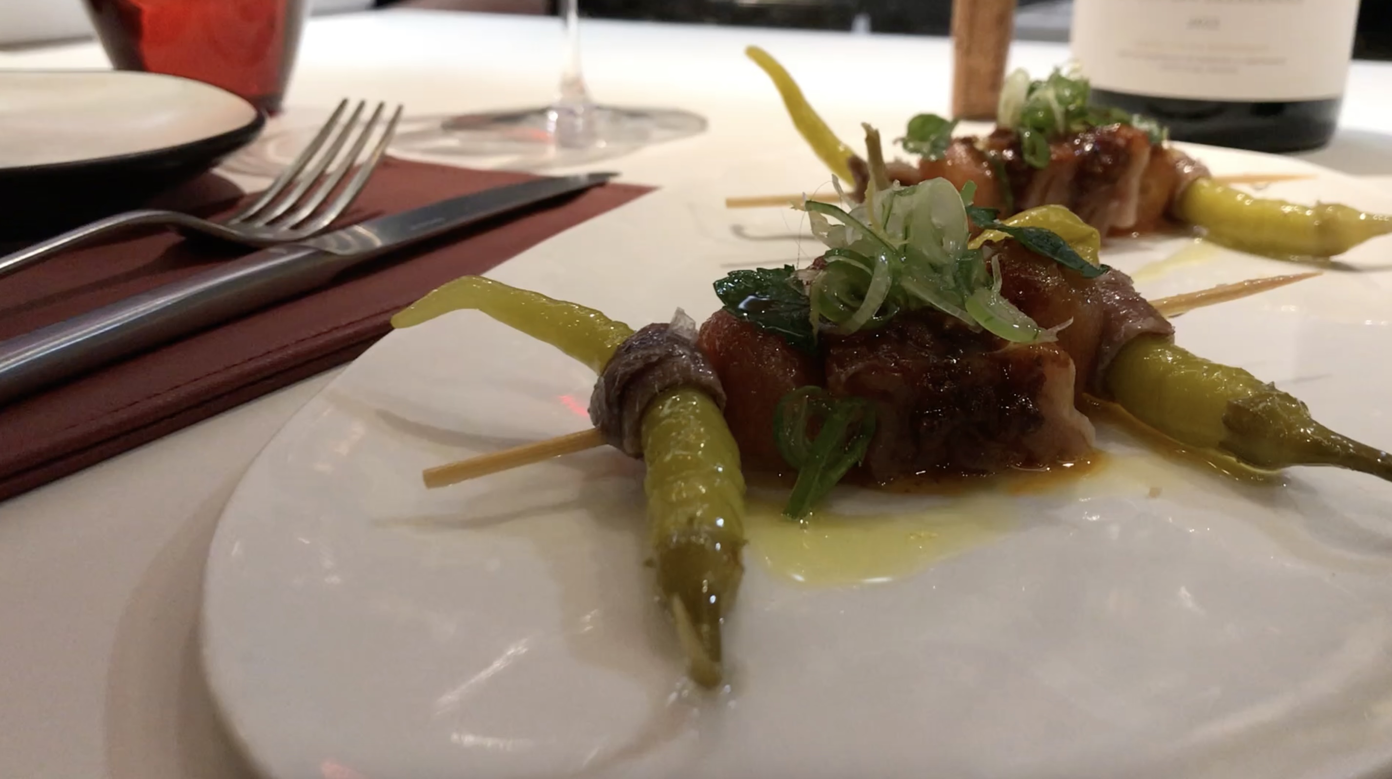 -Gilda de atún, anchoa, tomate confitado y piparra encurtida ( un clásico).