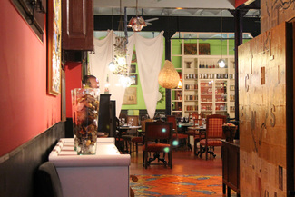 Cena de sábado noche con unos amigos. No conocía el local. La primera impresión fue que habían encargado a Barbie que fuese la los Encantes Viejos (http://www.encantsbcn.com/es) a comprar el atrezo para la "Alicia en el país de las maravillas" de Tim Burton. Raro, raro. Nos colocaron en la mesa de la entrada, justo enfrente de donde elaboran los postres. Lo que parecía un problema a priori, resultó una ventaja.