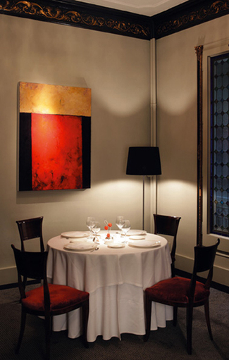 Local situado en el "eixample" barcelonés muy cerca del Paseo de Gracia el local ocupa los bajos de una finca clásica de esta zona con entrada por la escalera de vecinos,está dividido en varias salas, utilizan también la terraza posterior acondicionada con un ambiente más informal, muebles clásicos,grandes lámparas colgadas del techo, mantelería de calidad así como la vajilla y cristalería, en sus paredes cuelgan cuadros de grandes dimensiones, impresionistas y de vivos colores contrastando así con el clasicismo del mobiliario.