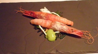 la gamba espectacular. Presentacion muy original en pizarra.