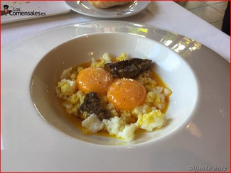 ─ Huevos con trufa y foie. Muy buenos. Este plato no va a ganar el premio la innovación pero tampoco es que le haga mucha falta: huevos con sabor, el aroma de trufa presente en cada bocado y un poco de foie para aportar un tercer sabor y un toque graso al conjunto. No hace falta nada más.
