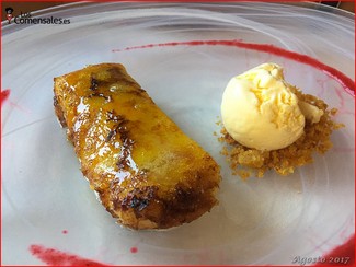─ Torrija de pan bríoche con helado. Muy buena. Este postre ya lo tomamos también en nuestra anterior visita y nos gustó bastante.