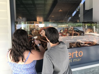 Cuando llegas, antes de entrar al restaurante, un enorme "acuario" lleno de gigantescos bogavantes, langostas, centollos, cigalas de Marin( de 30 cm), te da una visión de conjunto de lo que vas a encontrar en el plato y sientes ya una especie de orgasmo gastronómico. Nada mas entrar, puedes observar en una cámara frigorífica debajo de la barra, si no recuerdo mal, los pescados y mariscos del día.