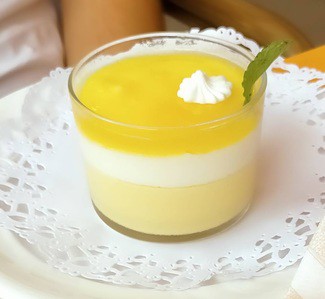 - Mousse de mango y pasión de coco (5,34 €) - Fresco y suave.