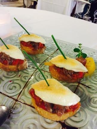 - Tostaditas de anchoa y escalibada gratinadas con alioli: Media docena de rebanaditas de pan de rechupete. Buenas anchoas bien limpias y con el punto de sal acertado.