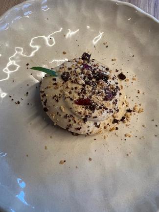 - Foie de turrón (correcto) y verduras en tempura (riquísimo con ligero sabor a curry en la tempura).