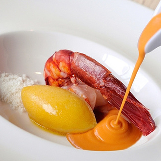 Frente al Kusaal un modeno local, no muy grande, donde puedes tomar unos pintxos o quedarte a comer/cenar. Local muy cuidado aunque al que le falta algo de intimidad. Servicio muy atento y agradable, joven y dinámico. El servicio del vino correcto, en coperío Schott y Spigelau, con copas de dulces también. Los platos muy bien elaborados. Tomamos para empezar un entrante de ajoarriero con bogavante y helado de lima y piña, y después yo me decidí por un atún con tagliatele y de sepia y mahonesa. Muy bien acabado. El postre espectacular, un cremoso de chocolate con sal y vinagre de módena. Finalmente dos personas, con un entrante y un principal, postre, copa de vino dulce (yo un Don PX) y un Contino 2004, por 104€ en total.