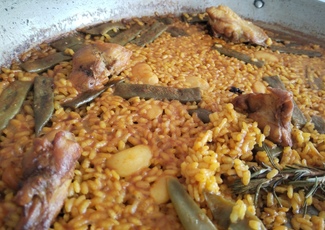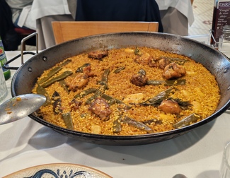 Arroz valenciano a 16'90€ por persona, buena cantidad de pollo, conejo y verduras, de punto del arroz perfecto (mejor que el año pasado) buen sabor y quizás algo sabroso sin llegar a estar salado, muy rico.