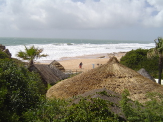 El llegar está un pelín complicado: en la carretera que N340 de Cádiz a Conil, antes de llegar a éste, te encuentras un cartel donde se anuncia la Urbanización Roche, tomáis esa carreterilla entre pinares, durante unos 10 Kms o así (a mí me dieron ganas dos o tres veces de darme la vuelta pensando que me había confundido), llegáis a una garita de guardia (de la urb.) y allí preguntáis.