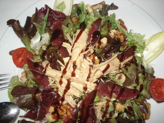Pedimos una ensalada con foie, frutos secos y jamón de pato que estaba buenísima.