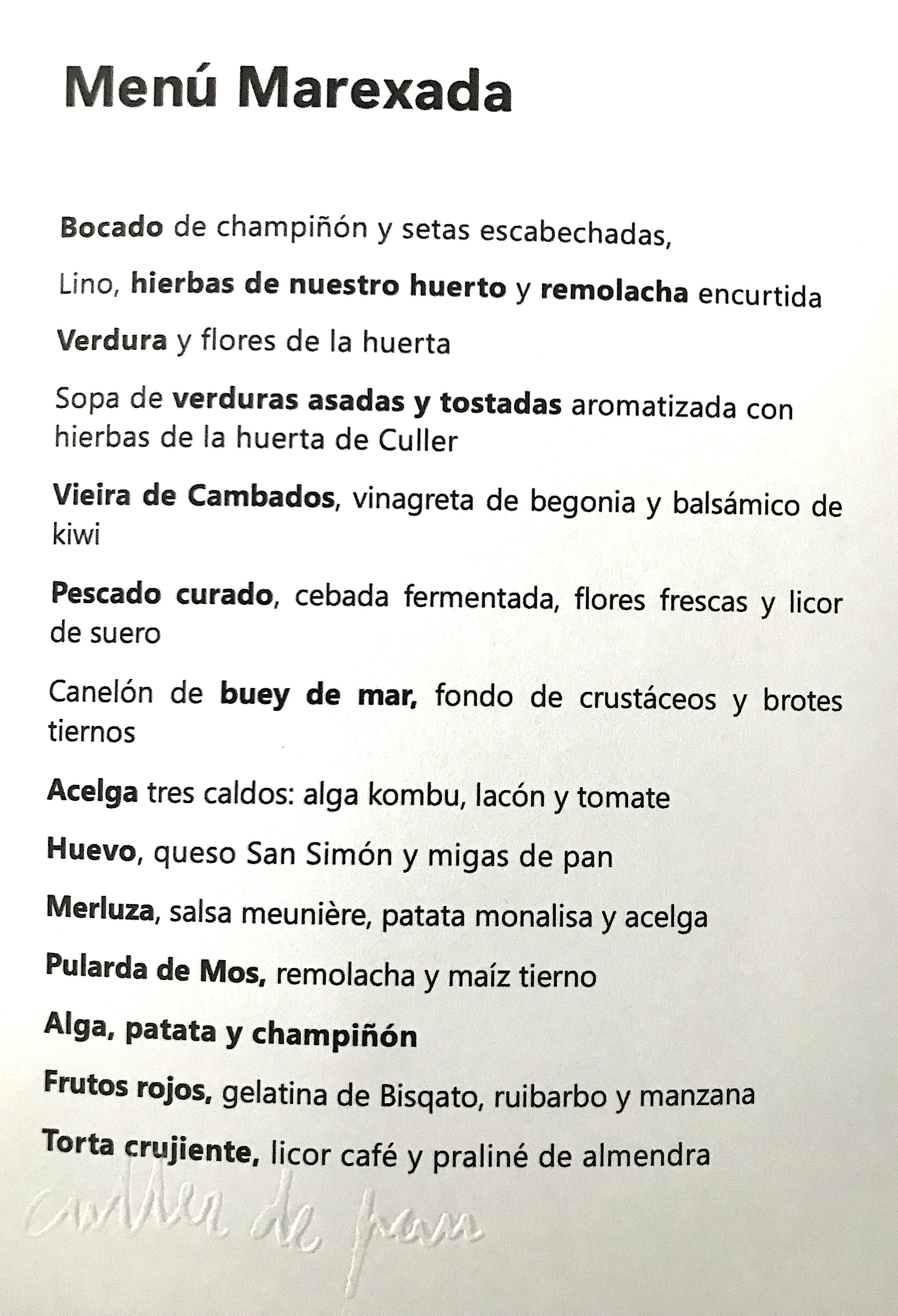 Este menu marexada,...cambia mucho los 2 años que llevo sin venir aqui. Llevan mucha velocidad en todo momento para sacar todas las mesas, y aunque es un equipo pequeño, llegan muy bien. El comienzo es una vorágine con los aperitivos.