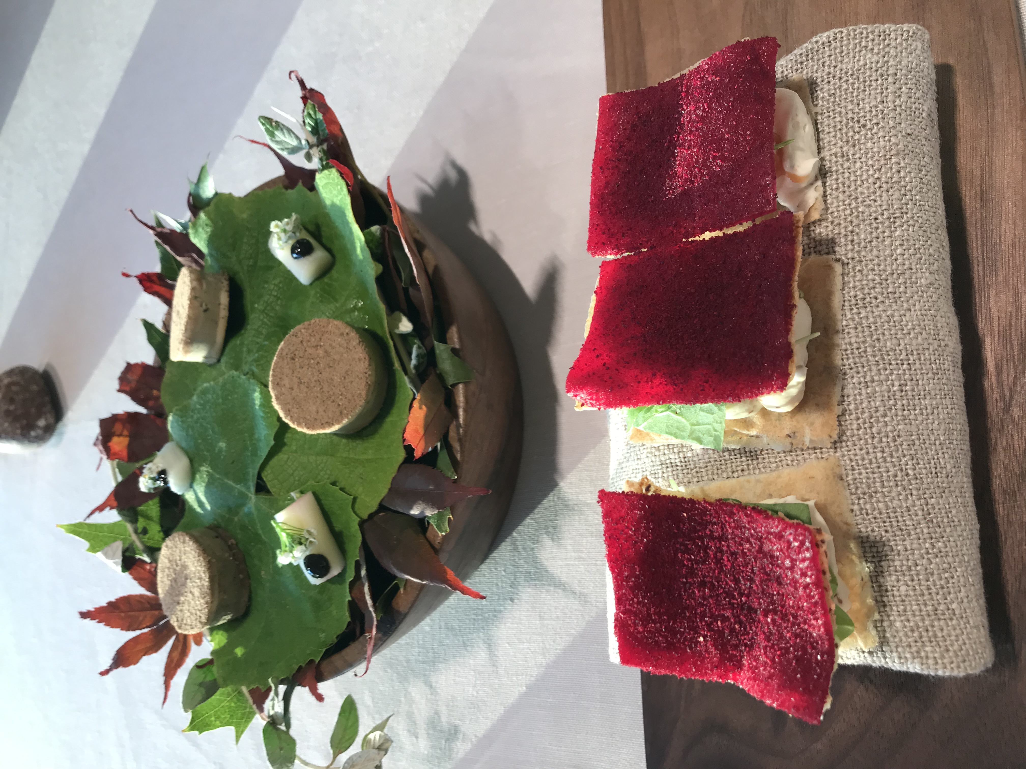 Merengue seco con sardina en salazón y una moreira encurtida aparte y como ultimo aperitivo remolacha de la huerta encurtida con unas bolitas de kéfir , debajo de la remolacha un tartar de remolacha con mantequilla , muy bueno , todos los aperitivos de producto cercano y reconociendo sus sabores y propiedades.