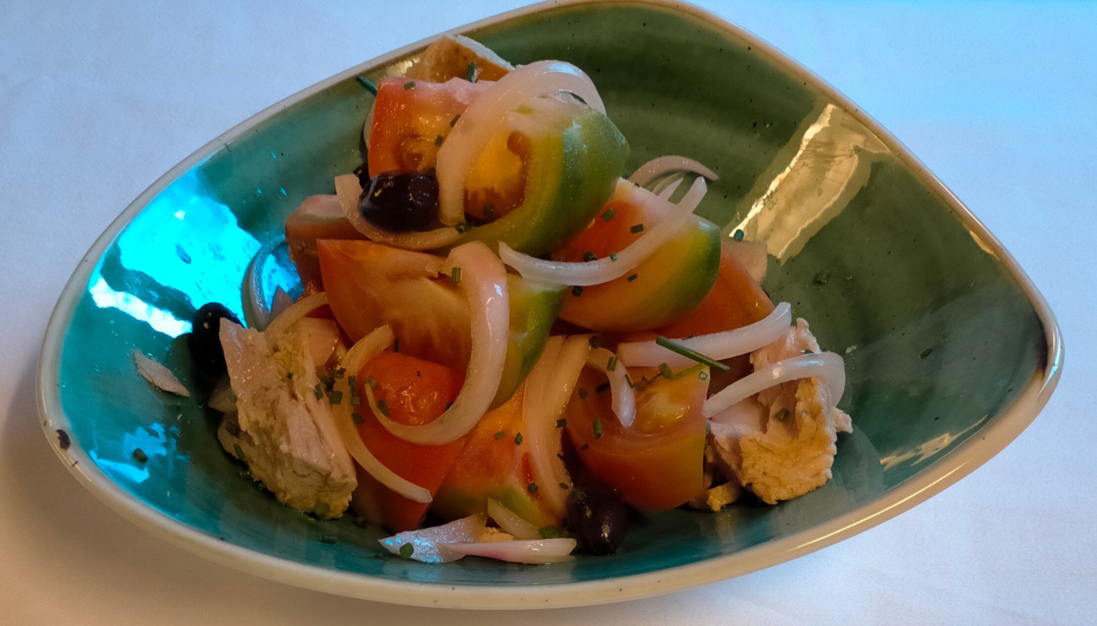 - Ensalada de tomate con cebolla de Figueras y atún - Según mi esposa, buena.