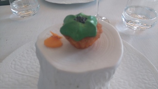 - Cupcake de huevo de codorniz y trufa. Recomiendan comerlo de un bocado para que el huevo explosione en la boca. Original y agradable.