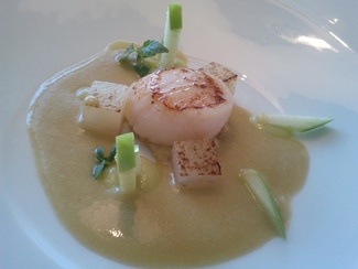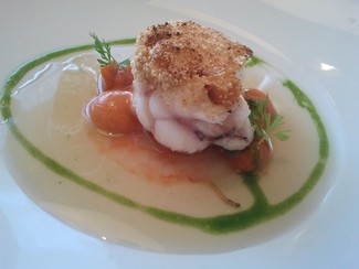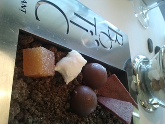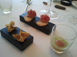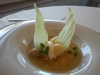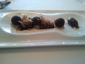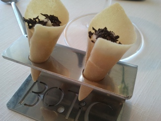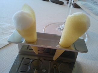 Nos sirvieron el cava en una muy buena cristalería y a una temperatura ideal, aunque yo prefiero que dejen la botella al alcance de mi mano para servirme yo mismo cuando y cuanto me viene bien, cuando esto no es posible suele pasar que me sirven cuando y cuanto no me apetece con lo cuan el cava se calienta, y cuando me apetece el camarero no está a la vista y no me sirven, lo cual me molesta bastante, y esto me ha pasado en el mismo Celler y en muchos otros.