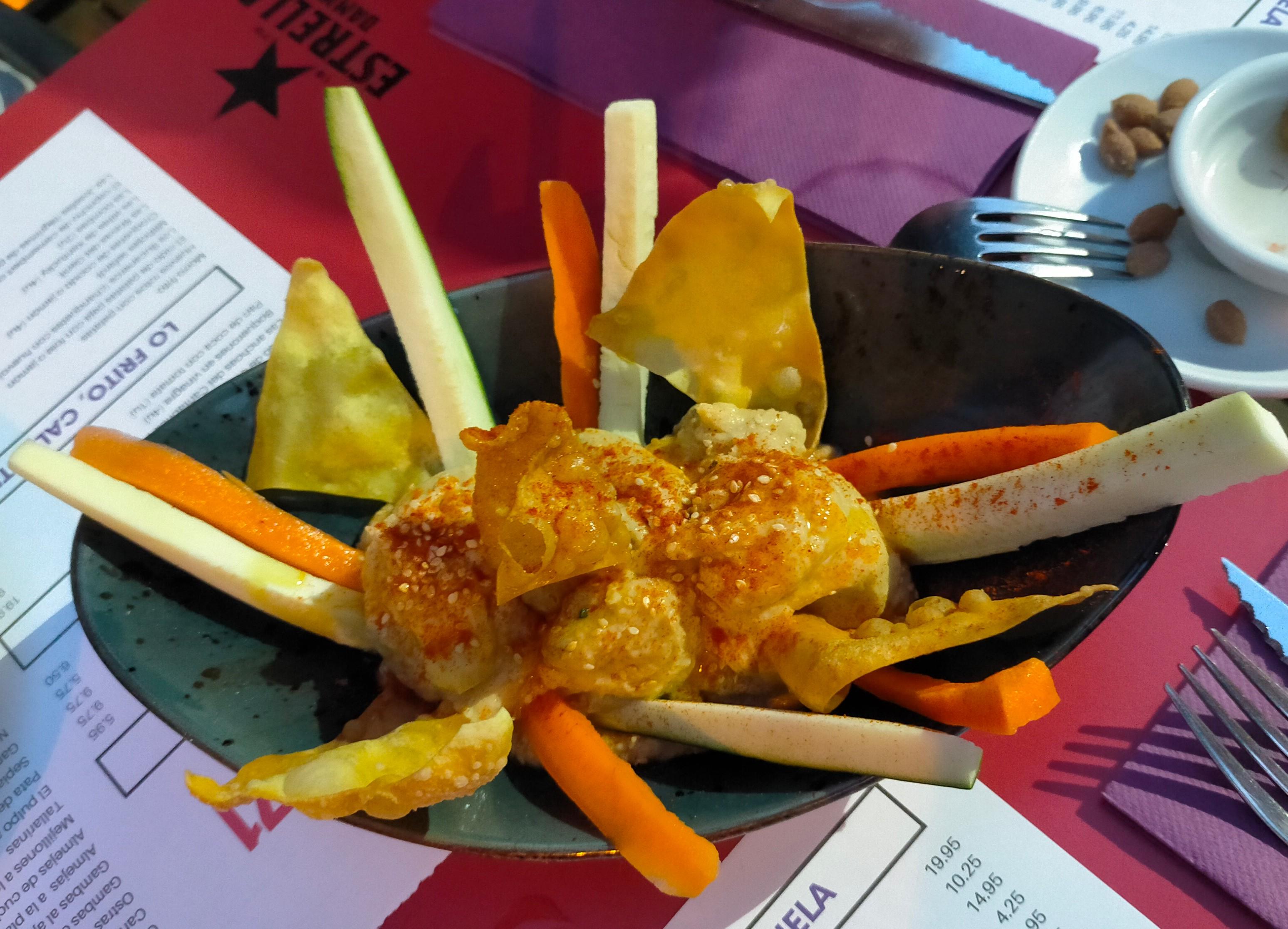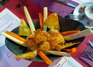 - Les braves del Genil (4,95 €) – Realment bones. Cruixents per fora i tendres per dins. Salsa sense floritures: maionesa i pebre vermell lleugerament picant.