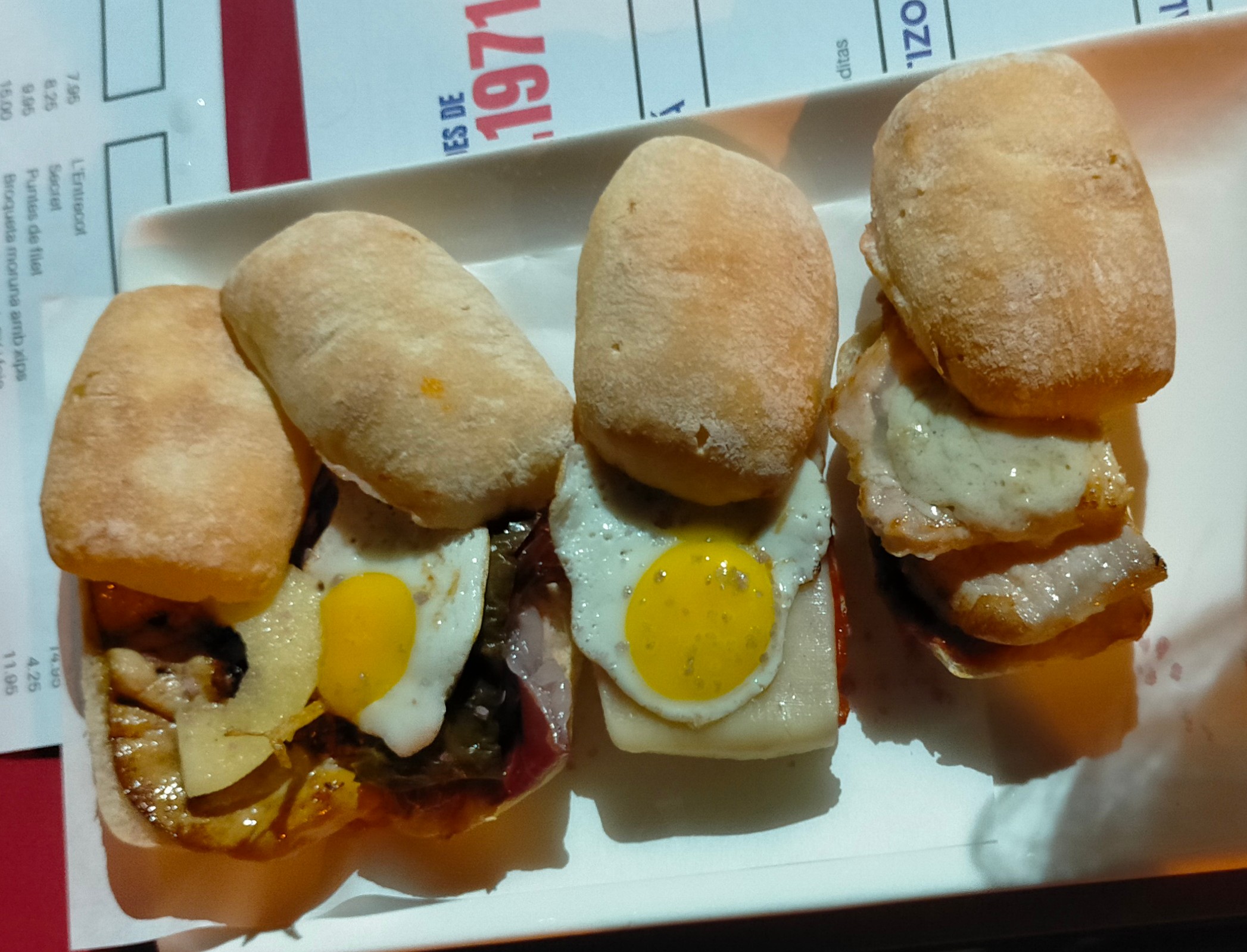 - "Montaditos" (3,25 €/ut.) - Bètic, mallorquí i foie planxa. Tots molt bons.