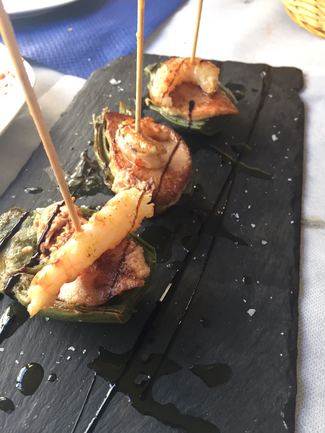 . un aperitivo por cortesía de la casa: un boqueron frito por pesona con un punto de alioli. Cumple bien.