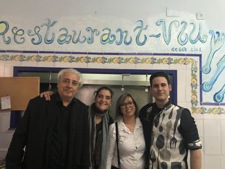 Local situado en el centro de Catarroja, y por tanto imposible de aparcar (y casi circular) en las estrechas calles vecinas, haciéndose recomendable la zona de la estación de tren cercana. Hace esquina a dos calles y tiene un planteamiento de bar restaurante de aspecto clásico actualizado. Esa sensación se transmite en la decoración limpia, luminosa, de blanco y azul intenso clásico de las zonas con salida al mar (Albufera), con algunos ladrillos de cerámica valenciana, y que transmite limpieza cierta modernidad sin abandonar raices clásicas. Valga como ejemplo unas curiosas perchas en la pared junto a las mesas hechas con mini sillitas típicas de nea pintadas en blanco y cuyo respaldo hace de percha. De la misma forma son las sillas de la sala pintadas en el azul intenso. Tiene una barra con entrada por la calle principal y unas mesas en la calle lateral con sombrillas por donde está la entrada al comedor, aunque es todo una misma estancia. Hay una terraza en la parte superior que debe ser interesante en el turno de noche o en invierno para tomar una copa (ahora abrasa el calor). Sobra algún elemento de bar como la máquina tragaperras.