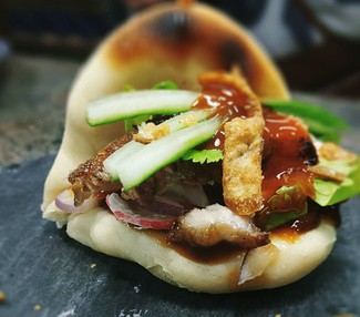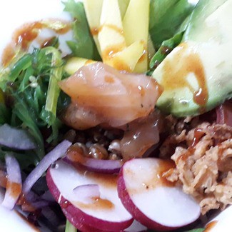 . tartar de hummus: con 3 sabores: garbanzos, berenjena a la brasa y pimiento asado. Ración amplia necesaria para compartir. No sé por qué el nombre de tartar que es incompatible con hummus. Bien de sabores y texturas.