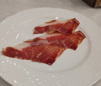 2 raciones de 100 gramos de jamón bellota 5C (18.50 cada una). Exquisito jamón.
