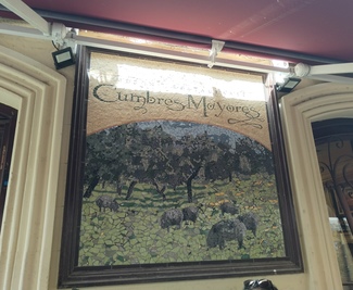 Cumbres Mayores, más conocida como “Cumbres”, uno de los clásicos y “must” de la ciudad, está junto a Alameda Apodaca. Se trata de un pedazo de mesón, de “taberna ilustrada” como les llamaban en Zaragoza en tiempos, o también otra denominación que molaba era “gran taberna nacional”. Grande, techos altos, rústico, pero con solera. Paredes de adobe lavado, techo de caña y vigas de madera, mucha madera por doquier. Jamones y chacinas colgando, canastos de mimbre, botellas de vino, fotos… ambientazo. La gente esperando a que dejes tu sitio en barra para pillarlo. Pero sin agobios, es curioso, te dejas imbuir por esa atmósfera y… No hay empujones, no hay apreturas: hay ambiente, ambientazo.