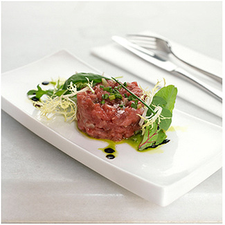 Aunque el ritmo pega un bajón considerable con una Pescaito frito muy mono en su cucurucho pero verdaderamente flojo y un Tempura de verduras corriente, enseguida se corrigen con unas riquísimas Chips de berenjena con salmorejo, un suculento Tartar de Buey y unas tiras de Secreto ibérico a la brasa que consiguen saciar nuestra glotonería.