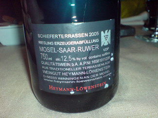 La carta de vinos es amplia, con numerosas referencias en tintos y menos en blancos, a pesar de que estos últimos acompañan mejor a la carta, y un pequeño apartado dedicado al champán, los precios algo subidos de precios, no tenían (al menos ese día) un sumiller que pudiera aconsejarnos, pero nos decantamos por una entrada de cerveza Japonesa Kirin, suave y de vino un blanco Schieferterrassen Riesling 05.