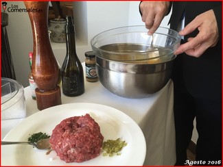 ─ Steak tartare. (2 x 24€). Te preparan el steak delante de ti preguntándote tu gusto de picante, aunque curiosamente no te lo dan a probar. Excelentes patatas fritas de acompañamiento y ración corta.