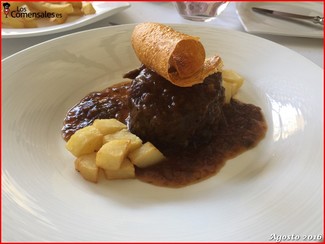 ─ Rabo de vaca estofado (1 x 17,5€). Muy bueno. Deshuesado, bien presentado, con una salsa delicada pero sabrosa… la ración me pareció corta aunque podamos poner como excusa que era de lo más barato de la carta.