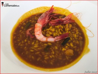 ─ Arroz meloso de rape y gambita roja de Santa Pola. Entre los conceptos erróneos que tenía y que poco a poco se me van desmoronando, es el de que es imposible hacer un buen arroz para tantísimas personas; este fue un buen ejemplo de ello, pero en este año he tenido dos ejemplos como han sido el dársena y el Monastrell. Si a lo anterior añadimos que podías repetir cuantas veces quisieras, entonces ya, sin palabras.