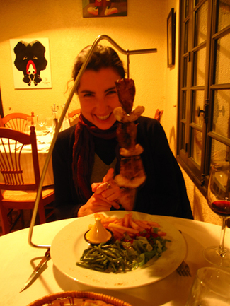 Probamos, entre los primeros: una fabulosa ensalada Mèdocaine, parecida a la de las Landas, con foie mi-cuit, mollejas de pato y magret; un riquísimo camembert rôti; y un extratosférico foie-gras mi-cuit casero, el mejor que hemos probado jamás (existe algún otro manjar tan exquisito?)