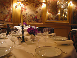 Local lujoso. Ambiente selecto. Decoración exquisita. Preciosos arreglos florales. Servicio maravilloso con algunos conocimientos de español (casi nos tradujeron la carta). Mesas algo más grandes de lo habitual. Cubertería, vajilla, cristalería de Sevres,... acorde con el local. Carta de vinos apabullante (y carísima), sobretodo para alguien, como yo, que no conoce apenas los vinos franceses.