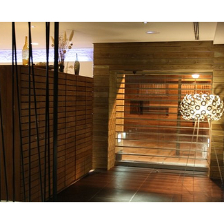 En una pequeña edificación con forma de cubo entre la Estación de Chamartín y el Paseo de la Castellana han levantado un local moderno que sorprende por su fantástico trabajo arquitectónico y de decoración (de muy buen gusto).