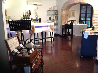 La comida concluye con un café sencillamente espectacular (según creo -porque me lo dicen- cuidan este aspecto del café en esta casa de manera singular, y el resultado, confieso, es insuperable, y a un precio de los de antes) (1,75 €). La casa nos obsequia con unos petit fours (a mí me gusta más decir mignardises) que me recordaron por un momento los inigualables del Sant Pau, de Carme Ruscalleda, ya que destilaban esa idea de fuego lento, de pequeño horno, de mucho amor en lo que se pone. Con esto creo que lo digo todo. La única diferencia entre ambas referencias mediterráneas la encuentro en las estrellas michelín, pero seguro que dos años son pocos para los gurús de la Guía Roja, que ya deberían haber reparado en este cachito de cielo en la huerta murciana. Pero estoy seguro que llegarán. El café lo tomamos en los magníficos jardines de la finca donde se encuentra el Estudio, y así no escamoteamos el puro (que no acompañamos, por prudencia, al gin tonic de un carro muy bien surtido) como reflejo de la conocida coctelería que fue y que Ana está intentando rememorar con más de treinta referencias de ginebras y la mitad de tónicas. Hay que indicar que el puro que pude fumarme ha sido detalle de la casa, guardado en la cava de alguna celebración matrimonial, que en la carpa anexa se celebran prácticamente todos los fines de semana del año. Se nos ha anunciado que está en marcha resolver este capítulo de la sobremesa, en contacto con uno de los principales club de Habanos de España.