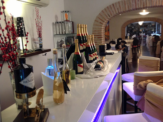 Nos reciben en la misma puerta con una copa de cava y que nos llevamos a continuación a la mesa(la misma mesa que ntra.anterior visita).
