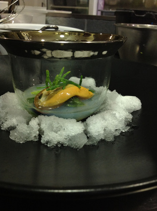 *Bebida:Mestres Brut Nature,servido a su temperatura justa y muy bueno,pero al que la burbuja desapareció rápidamente,ofreciéndonos cambiarlo por un Agustí Torelló Mata G.Reserva Barrica Brut Nature,que decir de éste,buenísima Macabeo acompañante para toda la comida.