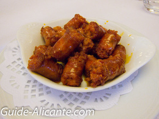 ─ Manitas “sin trabajo” (1 x 11€). 9/10. Pues como el nombre indica son sin trabajo pues ya viene deshuesadas. don dos medallones rebozados y en medio el relleno. Salsa muy bien conseguida. Si te gusta este tipo de platos es una recomendación segura.
