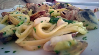 Y de segundo, la pasta.. ese alimento que Dios dio al mundo para que los italianos hicieran con ella una obra de arte. Y de nuevo lo puede comprobar pidiendo uno de los clásicos "menores" de la misma: espaguetis con almejas (alle vongole). La pasta, excepcional; eso es "el dente", ese pequeño crujir, casi imperceptible, pero que se siente y se disfruta. Unas almejas, de tamaño medio, pero muy abundantes y de un sabor excelente, con un punto salino. Simplemente magníficos.