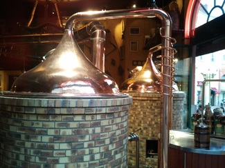 Nos recomendaron el restaurante “Chez Alphonse” pero estaba lleno, así que decidimos buscar otras opciones, como soy un enamorado de la cerveza al llegar a esta Brasserie su gran alambique y sus toneles me deslumbraron. n