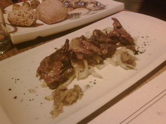 - Pluma ibérica BBQ con berenjena triturada y trufa: Extraordinaria pluma con toque de carbón que le iba perfectamente, acompañadas por patatas paja de las de pinchar y pinchar.