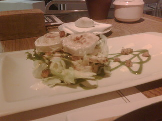 La Ensalada Nahu Beach, que lleva una salsa verde buenisima y un sabroso queso de cabra acompañandola. Tambien pedimos Huevos Ricos y famosos, Tartare de Atún (del que puedo decir que estaba riquisimo), Solomillo de Salmón y Pluma Iberica.