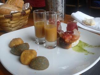 Antes de irme de vacaciones a descansar al pueblico , opte por canjear el ultimo bono de comidas que tenia , este restaurante , tiene cinco locales con el mismo nombre , cuatro en vizcaya y uno en castro urdiales , yo opte por el que esta en frente del museo de bellas artes , decoración , en azul y amarillo , nos atendió una joven simpática, a continuación os pongo el menú , este menú nos costo 22€ , si contamos con que la pagina que lo publicita , se queda con la mitad , es el primer sitio donde voy , que estoy seguro que no ganan un duro , con esto , y también es el primer sitio , en que podría pagar algo mas por lo comido , el vino era un navarro , pero vamos , que por lo pagado , te puedes pedir mejor vino , al ser domingo , tome el que había y poco , calidad razonable , sin tirar cohetes , y abundante cantidad , mirar las fotos , no pude menos que tomarme un gin-tonic , de ginebras las justa , de bifiter o como se escriba ,5€ y una manzanilla para la parienta ,1,20€.